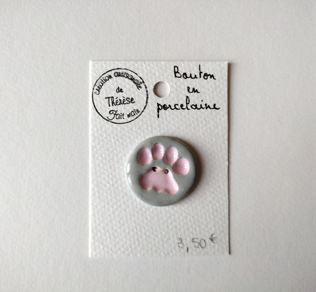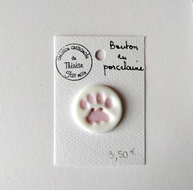Bouton en porcelaine empreinte patte de chat.