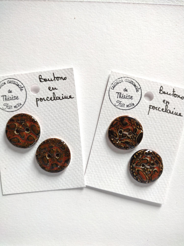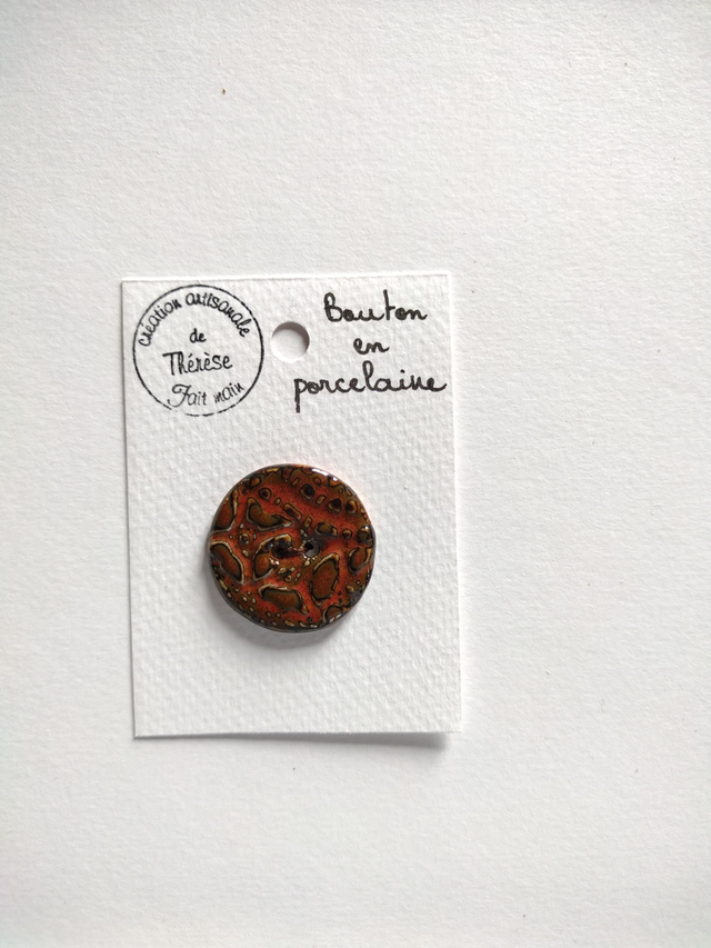 Bouton en porcelaine, motif en relief, bicolore marron.