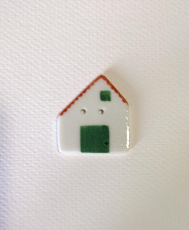 Bouton en porcelaine en forme de grange.