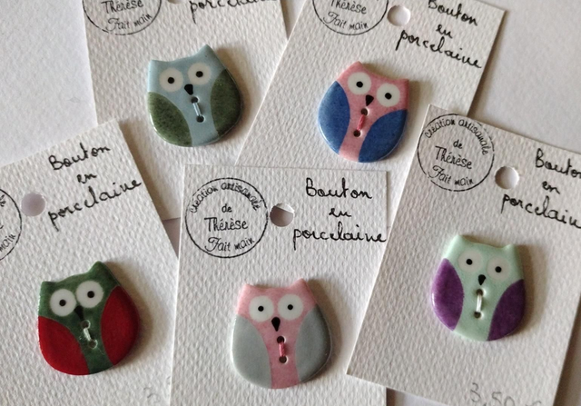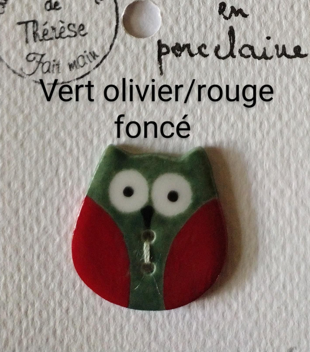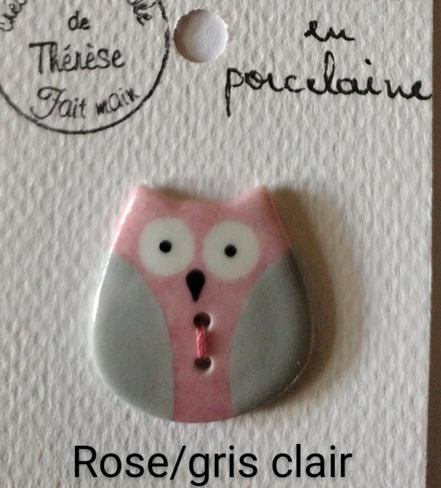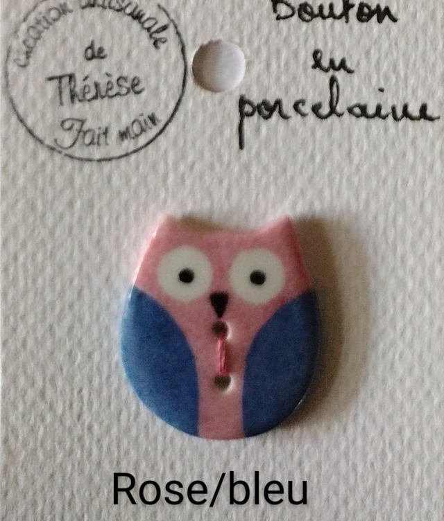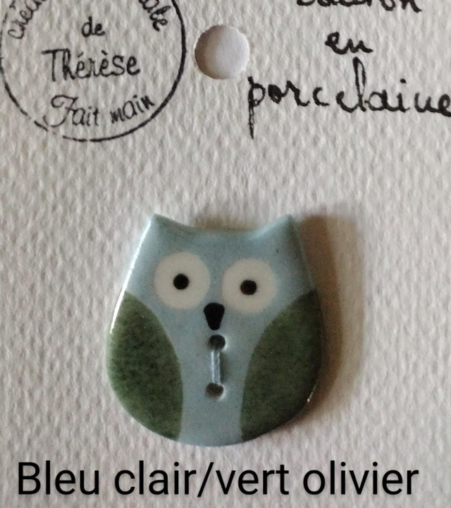 Bouton hibou en porcelaine émaillée.