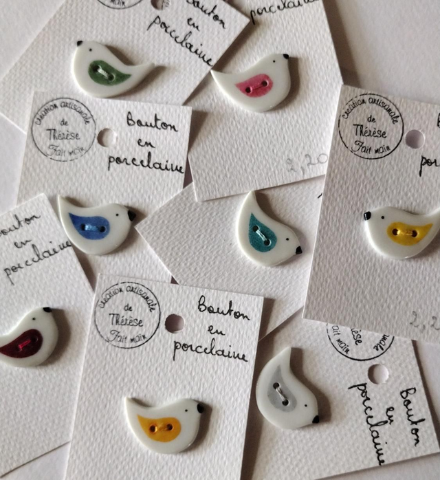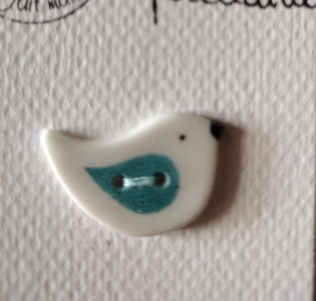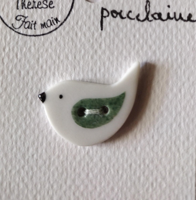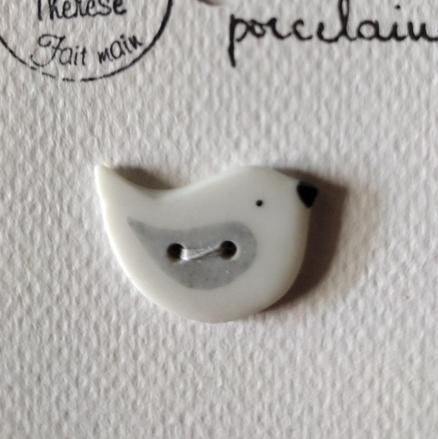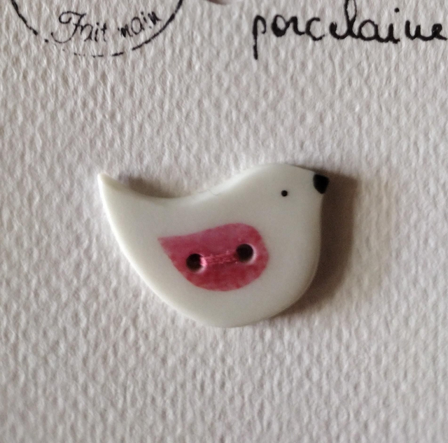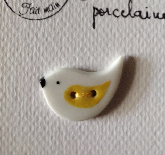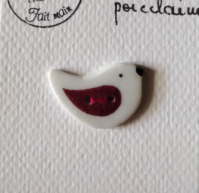 Bouton petit oiseau en porcelaine émaillée.